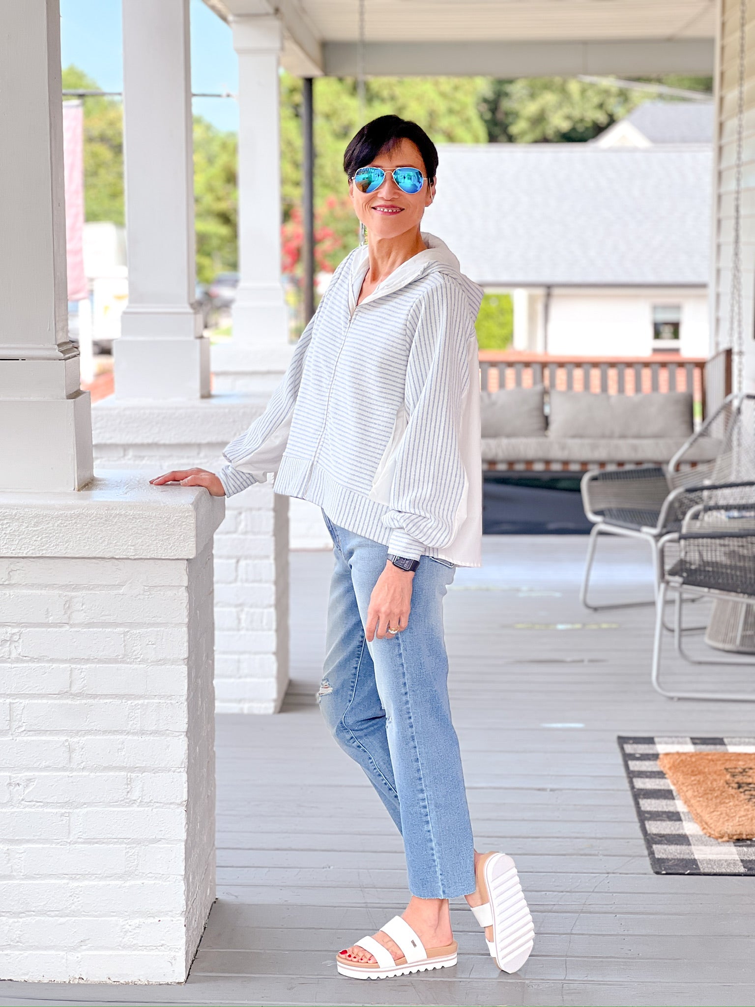 Prisca is wearing a size 26. We find that the Belen Jeans run true to size.