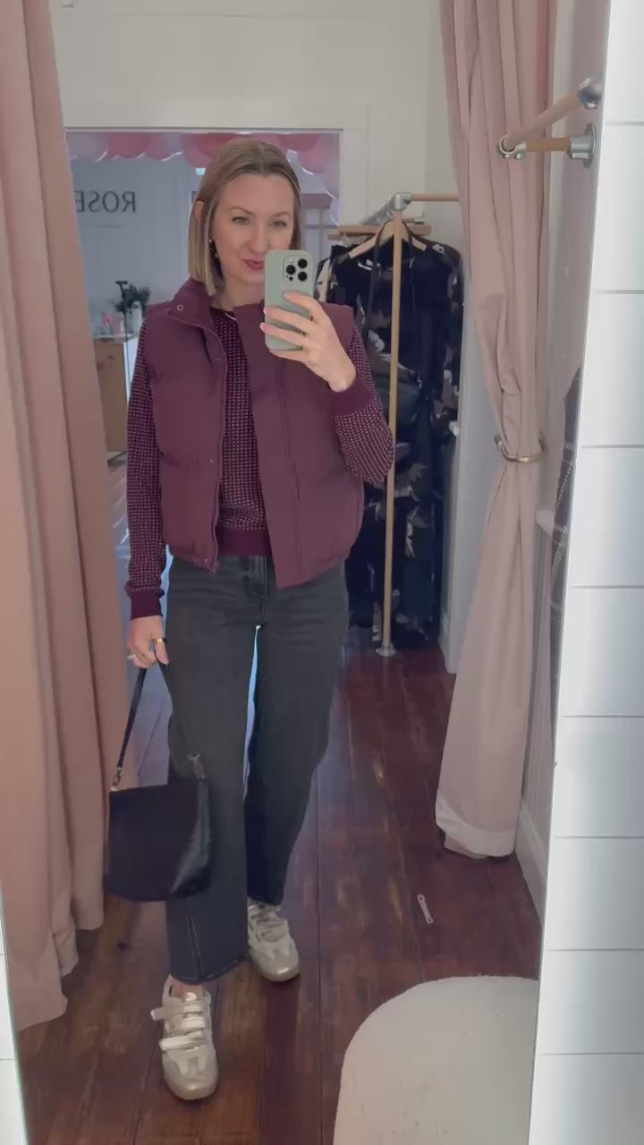The perfect keeps-you-warm and comfy puffer vest, this slightly cropped vest is featured with a zipper and snap front closure with dual side pockets.