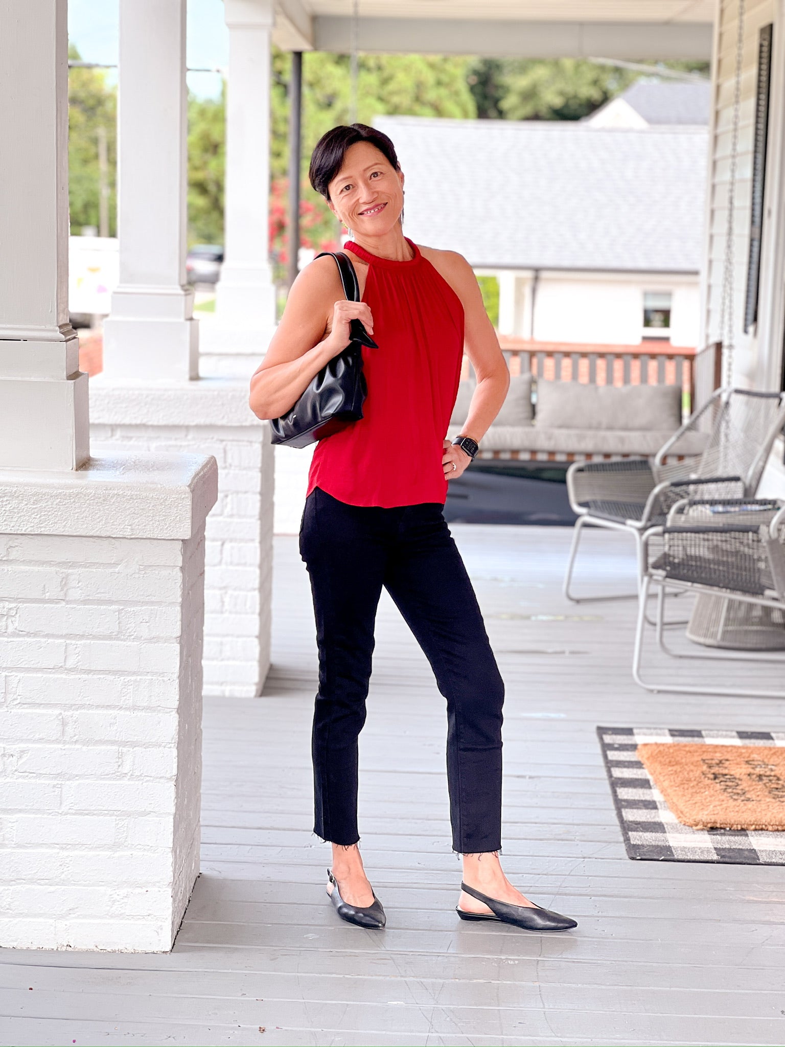 Prisca is wearing a size small. We find that the Elisa Tank runs true to size.