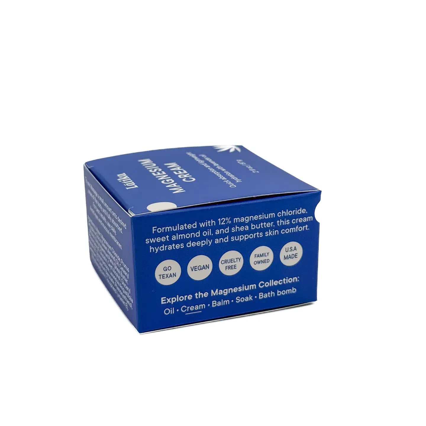 Magnesium is essential for muscle recovery, energy production, and overall wellness. When absorbed topically, magnesium bypasses the digestive system for more effective replenishment. Enjoy this magnesium cream's lightweight, fast-absorbing hydration. It is crafted with magnesium chloride, lavender essential oil, and a nourishing blend of botanical oils. This non-oily, thick cream absorbs quickly, leaving your skin deeply hydrated and refreshed. With 12% magnesium chloride, this cream provides long-lasting moisture while delivering calming benefits, making it perfect for daily self-care or a relaxing bedtime ritual.