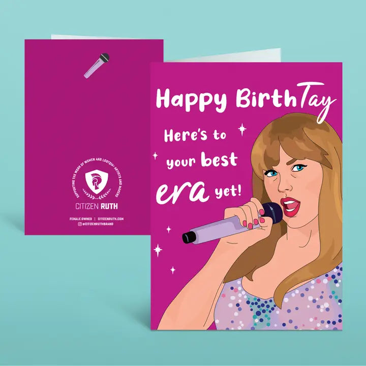 Having a tay Tay Birth-Tay card is just necessary these days. This bold and fun card reads, "Happy BirthTay! here's to the best Era Yet!"