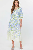 Elegant and effortlessly romantic, the Ariel Dress is made for special occasions. Featuring 3/4 puff sleeves with cuffed detailing and a split neckline adorned with delicate lace trim, it blends vintage charm with modern femininity. The belted waist cinches for a flattering silhouette, while the flowy midi length adds graceful movement. Perfect for garden parties, weddings, or any moment that calls for a touch of floral beauty.