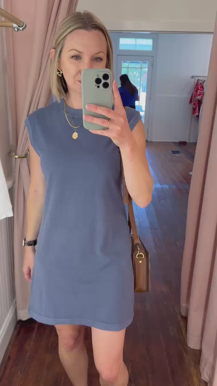 Cool, casual, and effortlessly chic, the Gianni Dress is a warm-weather essential. Featuring a crew neckline and dropped muscle sleeves, it offers a modern twist on a classic silhouette. The relaxed fit keeps things comfy and breathable, while the mini length adds a flirty, laid-back vibe. Perfect for weekend outings, beach days, or layering with a denim jacket for an easy everyday look.
