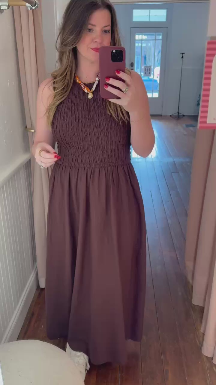 Getting ready is easy with this linen blend dress that's made for any occasion. Crafted from a washed linen blend, this maxi dress stuns with its elastic bodice and full yet lightweight skirt. Its day-to-night versatility makes it a wardrobe classic.