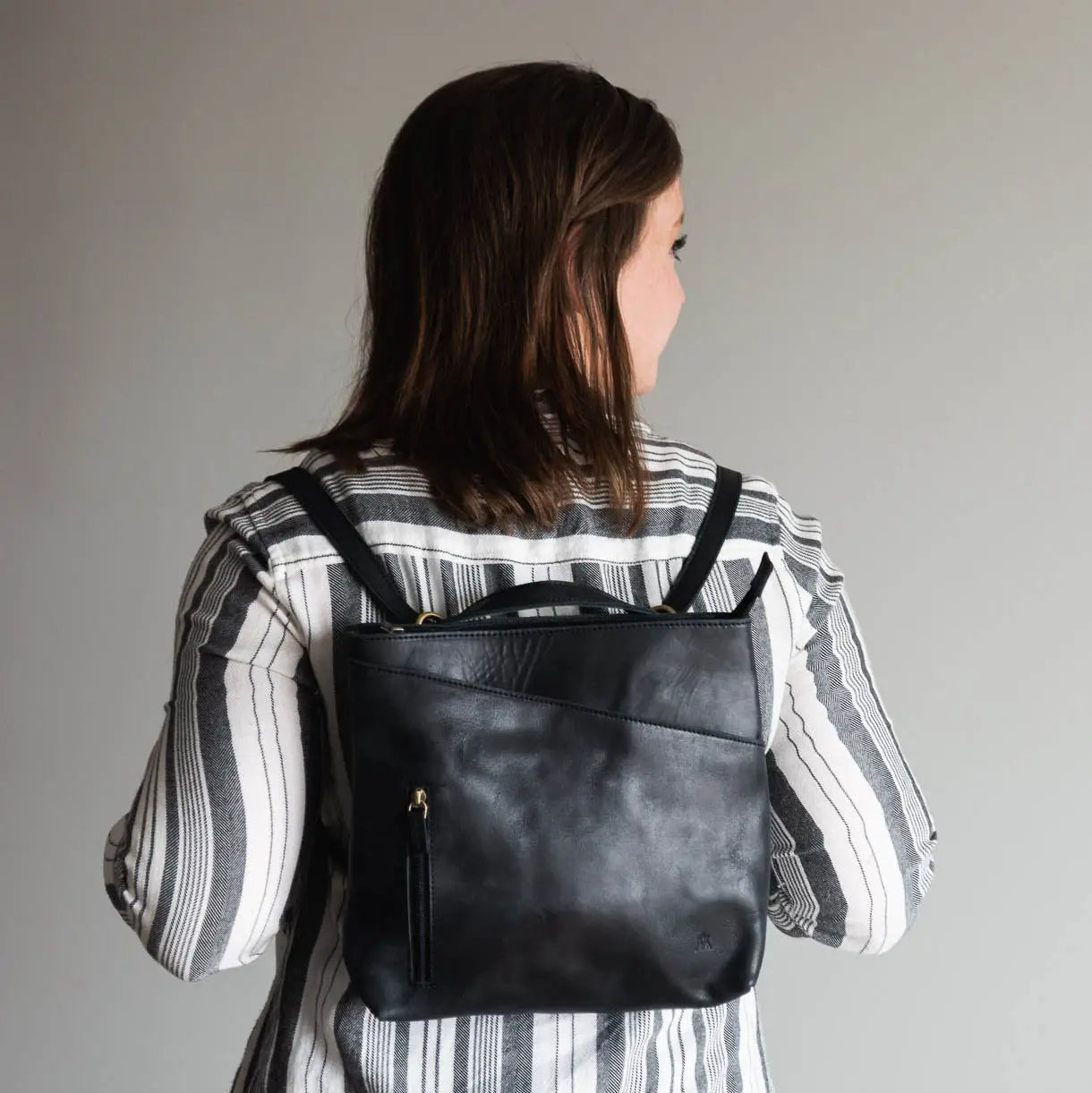 Our Sojourner leather backpack purse for women was designed with an on-the-go lifestyle in mind. Wear as a backpack that can hold your essentials, or pull up on the straps for a crossbody bag option. This handcrafted leather purse crossbody and backpack features adjustable straps so it can fit the way you want it to. Take her on your next big trip or your next errand. You'll love her versatility for all of life's moments.