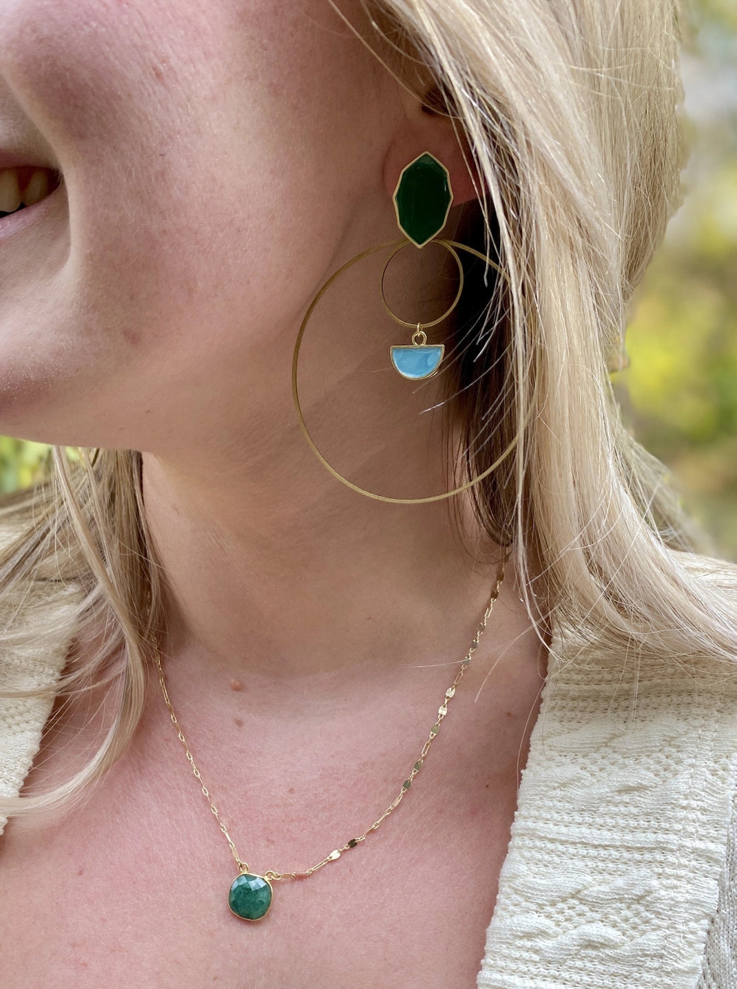 Statement Double Hoop Earrings, Emerald