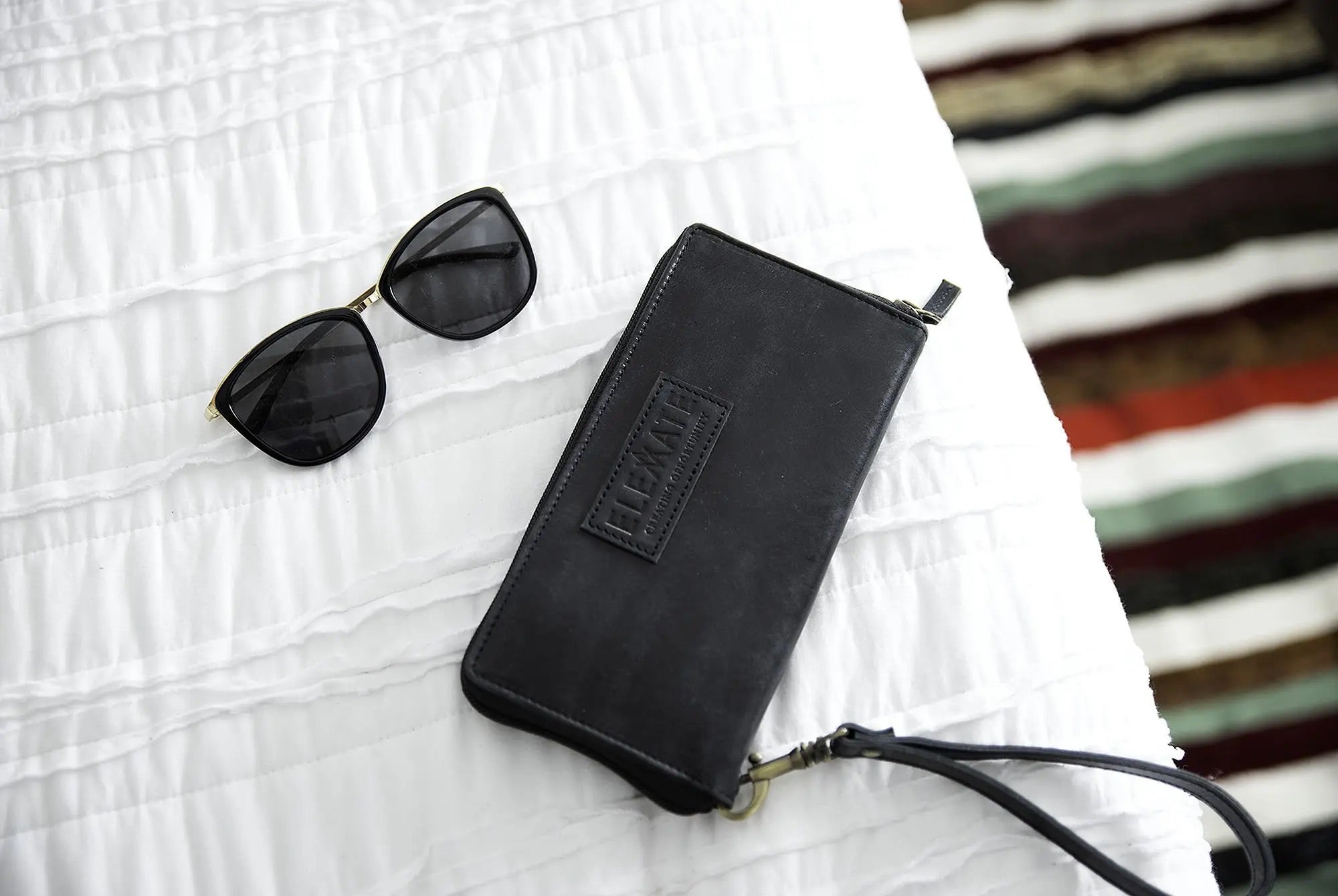 unkOur full-grain zipper wallet is perfect for those who want to hold all the things! Fit your cards, cash, checkbook, coins, and other valuables inside. The accordion style wallet unzips and unfolds for 12 card slots, 2 cash holders, a checkbook holder, phone slot, and a zipper coin pocket! You can hold it all, plus have an easy access open pocket on the outside for receipts. This wallet comes with a detachable wristlet strap for on-the-go use.