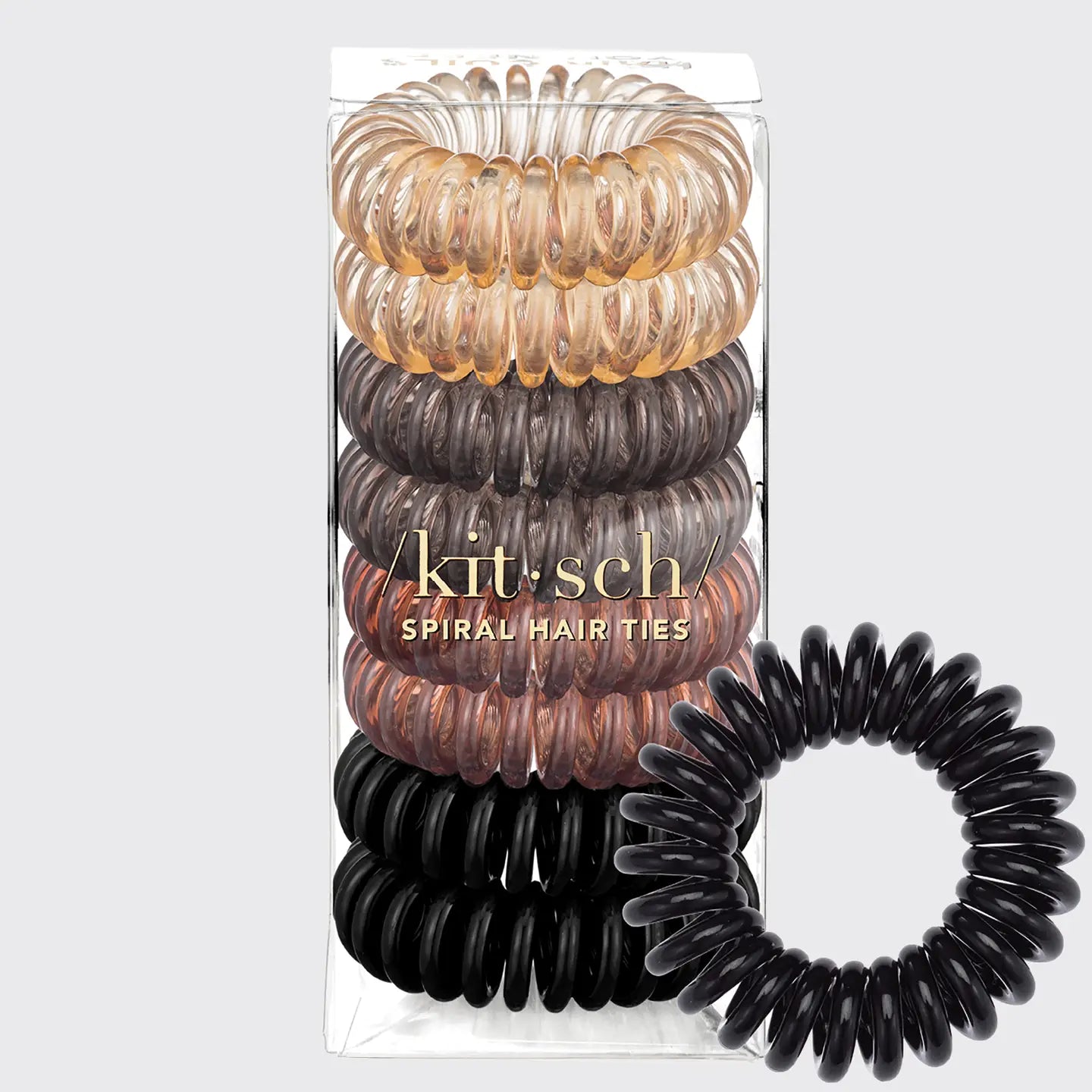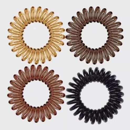 Telephone cord-style hair ties! Creaseless and dent-free hair coils by KITSCH come in an assortment of brown hues. Headache & kink-free and perfect for every hair type! Pack includes 8 hair coils.