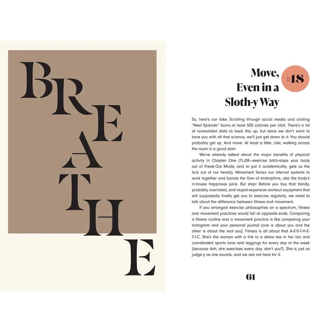 A beautifully illustrated, irreverent guide to breaking out of the anxious thought patterns that hold us back. This little self-help book contains 101 anxiety spiral-stopping exercises, inspiring pep talks, and calm-the-F-down activities. With a no f*cks given tone, research-backed therapeutic techniques, and fun, fresh illustration, F*ck Anxiety will help you take control over your anxious thought patterns and make you laugh at the same time. Divided into six chapters—the first two will help kick that anxiety spiral in it's scrawny ass, and the next four help build and flex anti-anxiety powers on the daily—F*ck Anxiety covers the following: - Get Out of Your Head in Ten Minutes or Less - Get Stubborn Against a Longer Spiral - Do These Eight Things Every Day—You Deserve It! - A Grab Bag of Ways to Be Amazing to You - Truths + Tending for Shitty Situations - Hush Up, It's Time for Your Daily Moment of Zen.