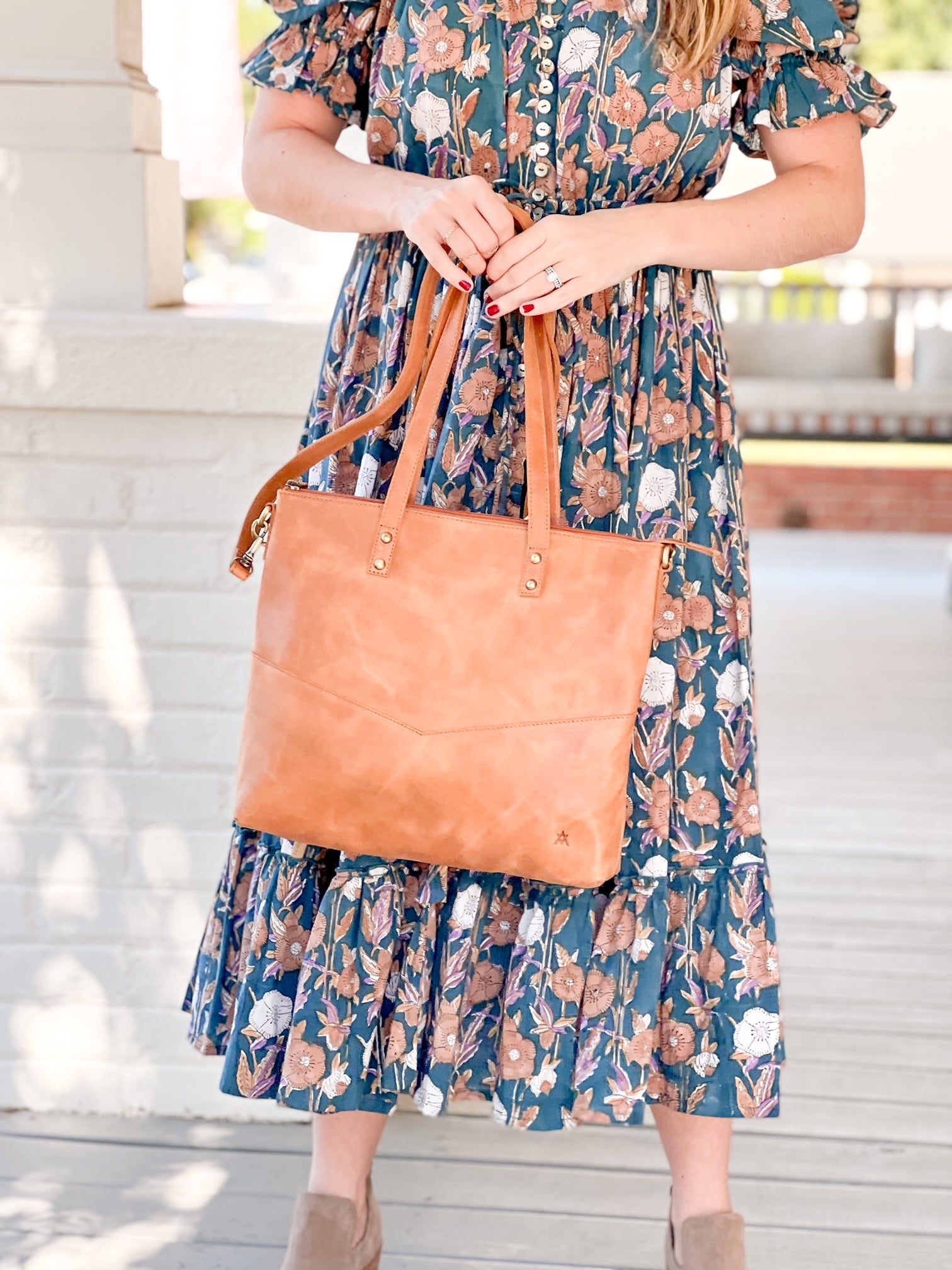 Our Mid-sized Zipper Tote carries it all without sacrificing size. Not too small, not too big - this bag will hold all of your essentials, plus more! It features a top zipper closure and crossbody strap to go hands-free. This full-grain leather bag is a closet staple and will be a go-to for years to come.