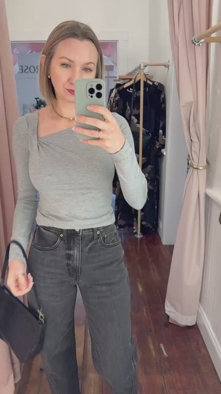 The Rosa Top is made from a soft jersey and designed with an asymmetrical neckline that creates a subtle twist effect across the front. It features long sleeves and a smooth, body skimming fit that gives it a refined, modern look.