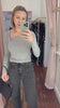 Model is wearing a size small. We find that the Rosa Top runs true to size.