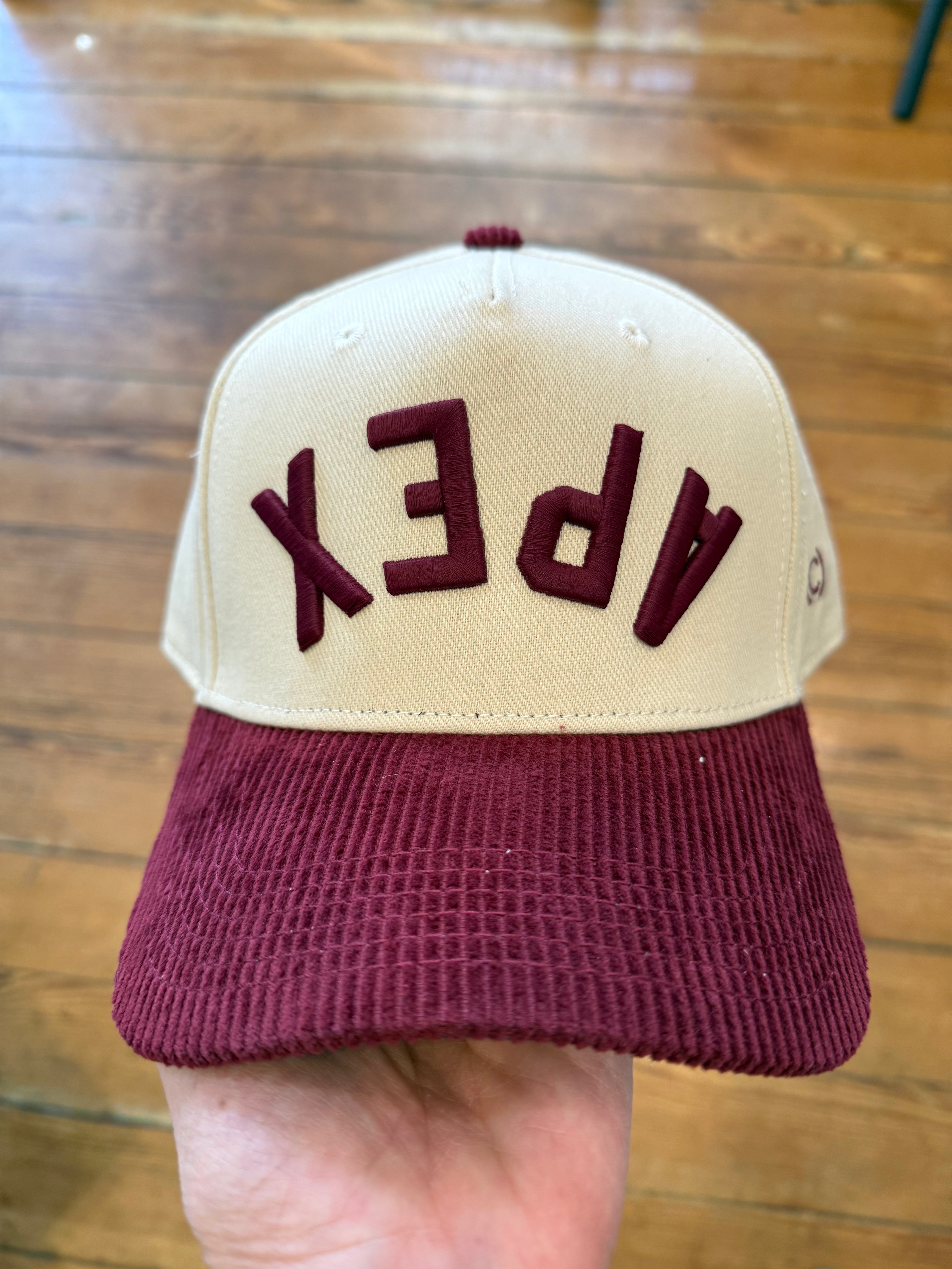 Apex Upside Down Corduroy Hat, Maroon & Cream