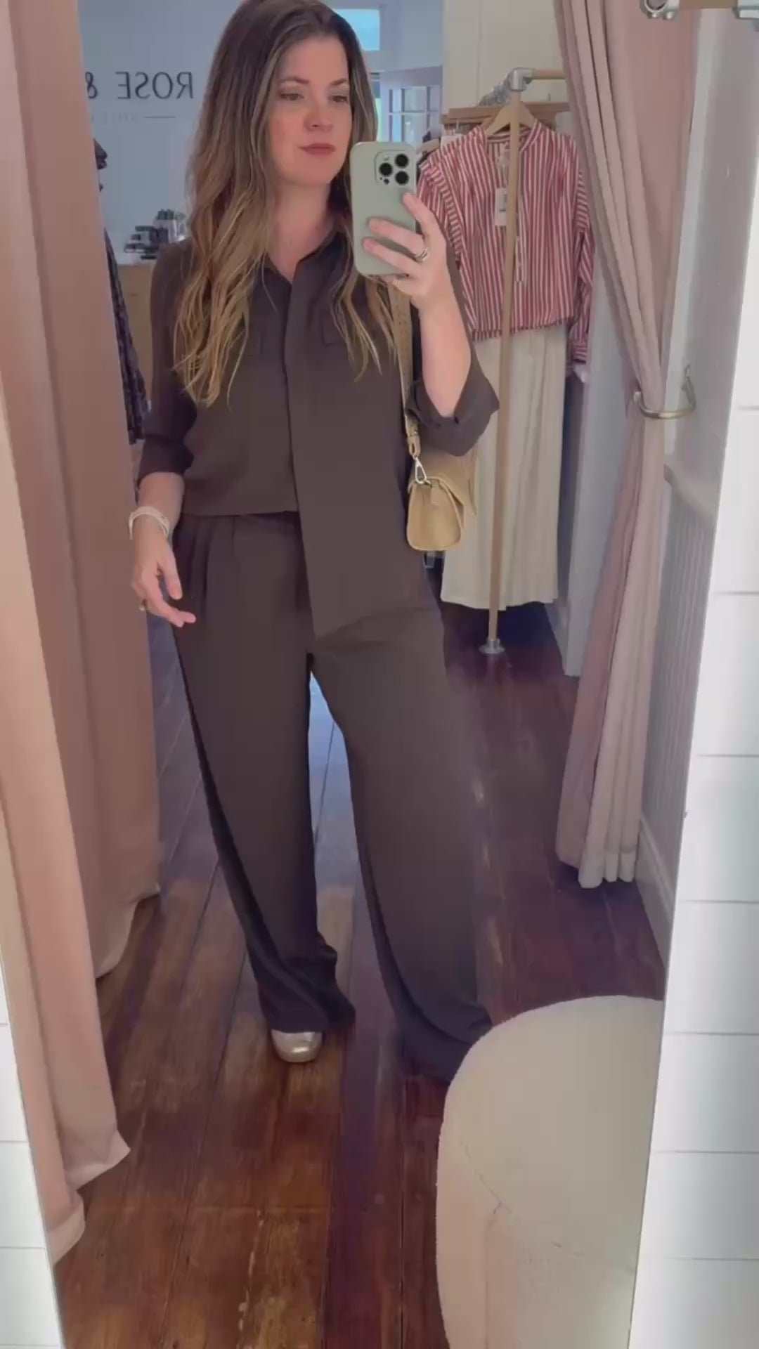 The Janessa Pants are the perfect mix of comfort and sophistication. Featuring a relaxed wide-leg silhouette, an easy elastic waistband, and functional side pockets, they’re designed for all-day wear. The rich fudge hue adds a modern neutral touch, making these pants easy to style from work to weekend. Pair with our Janessa Top for a matching outfit!