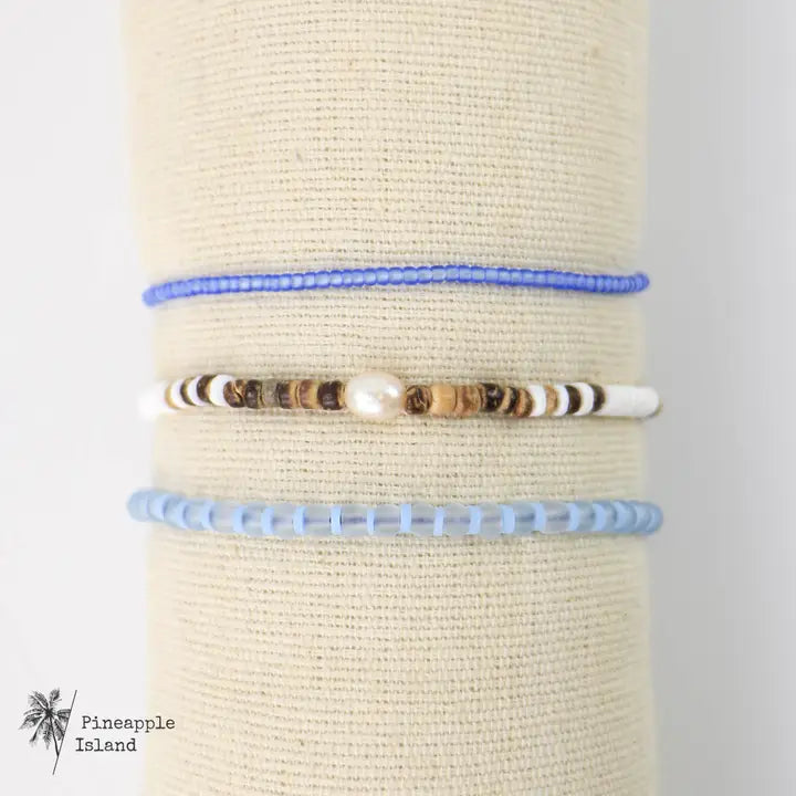 Tonal Chromacolor Miyuki Bracelet Trio, Cobalt/Silver