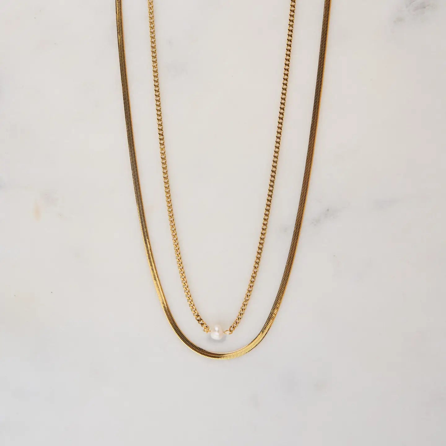 Our Cove Necklace is the perfect layered necklace. Can't choose between wearing a gold chain or a pearl necklace? Well, now you don't have too!