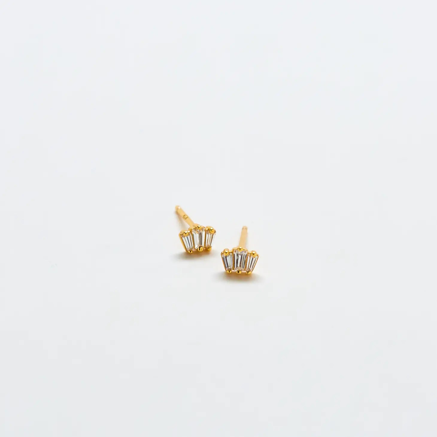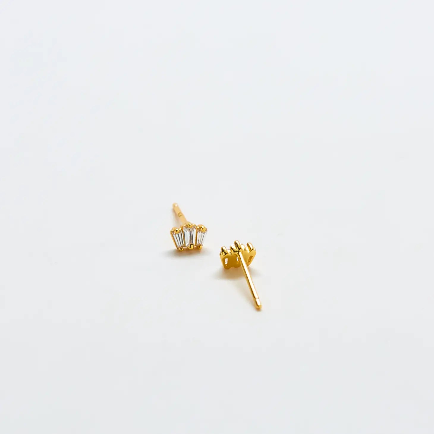 Add a touch of sparkle to your everyday earrings with this pair of trio baguette stud earrings. Can be added to a second piercing for the perfect layered look.