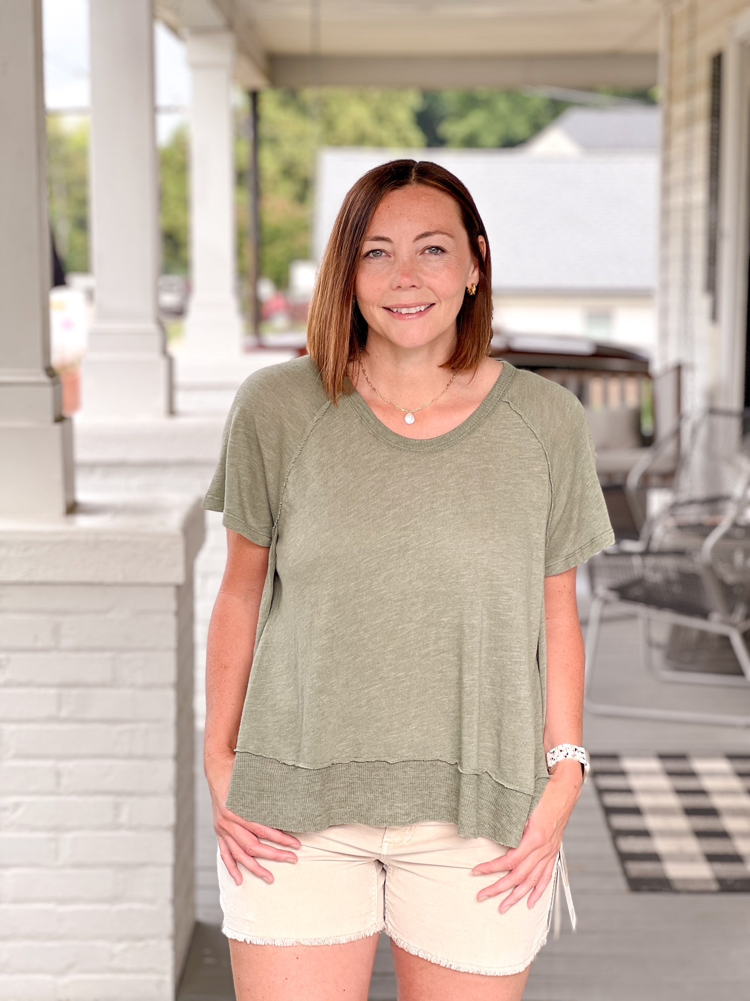 The ultimate in laid-back luxe. The Lina Textured Scoop Neck Top boasts an oversized, breezy fit with raglan sleeves featuring raw finishing touches. A high-low hem with side slits adds movement and a laid-back vibe, making this tee perfect for everything from lounging to layering. Pair with your favorite joggers or jeans.