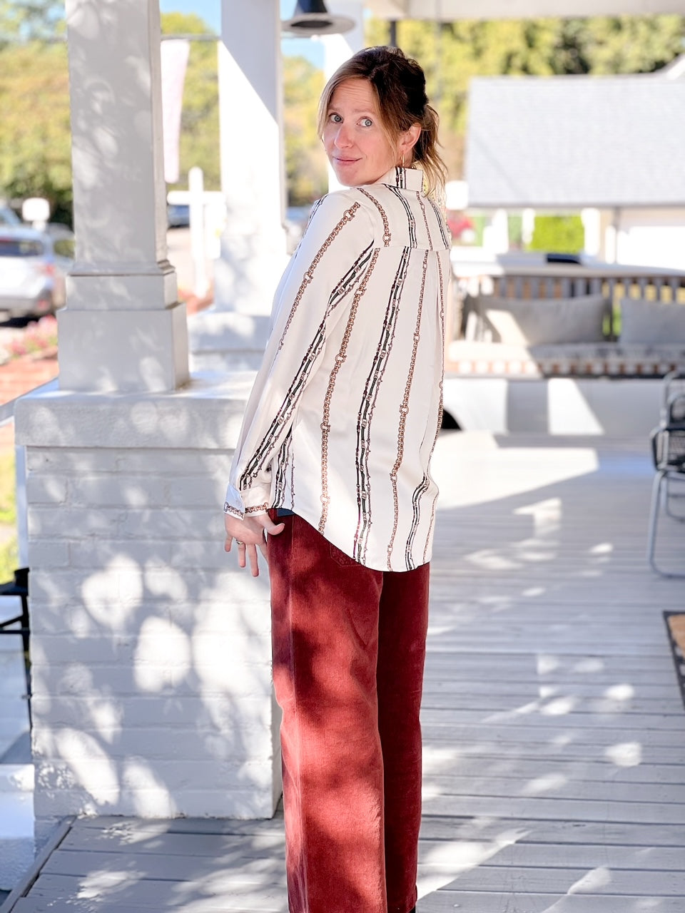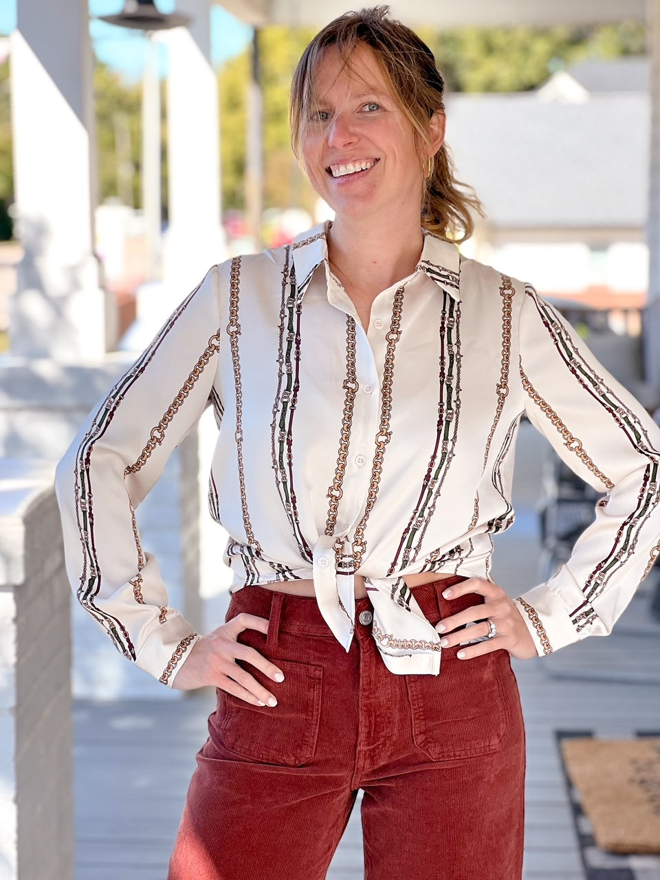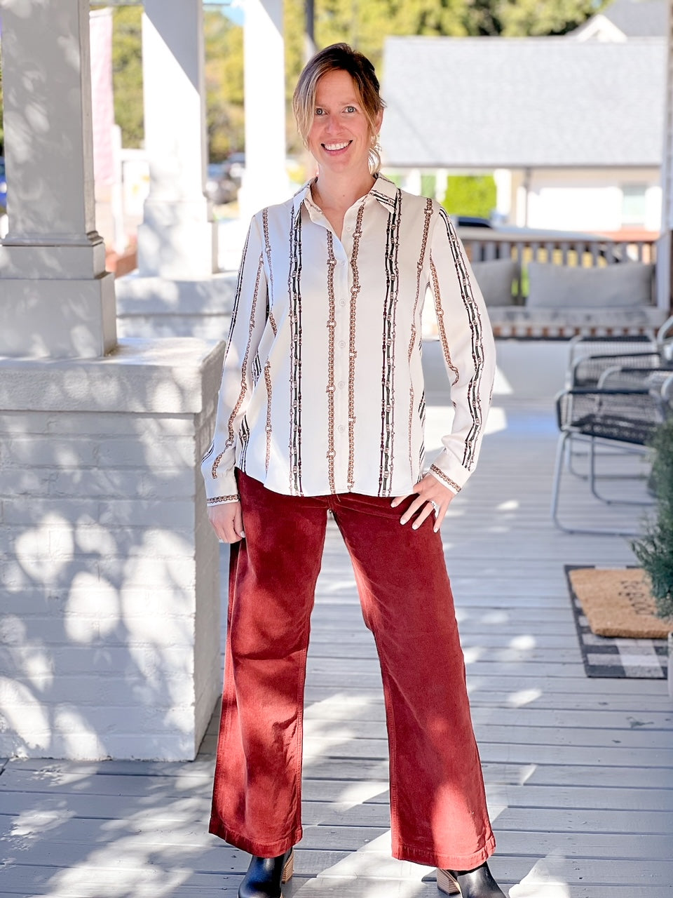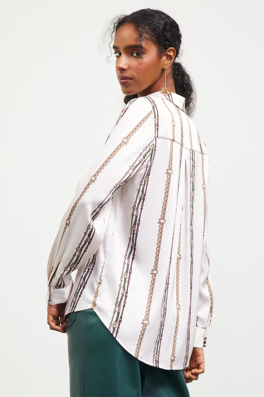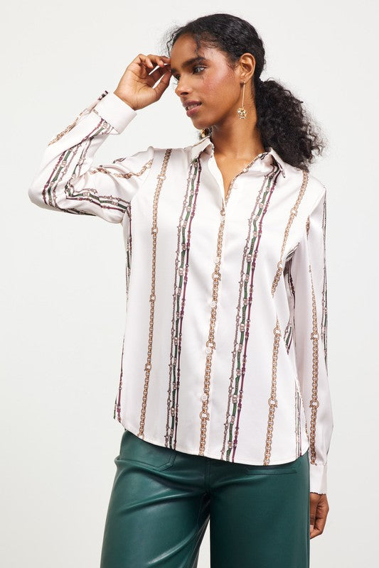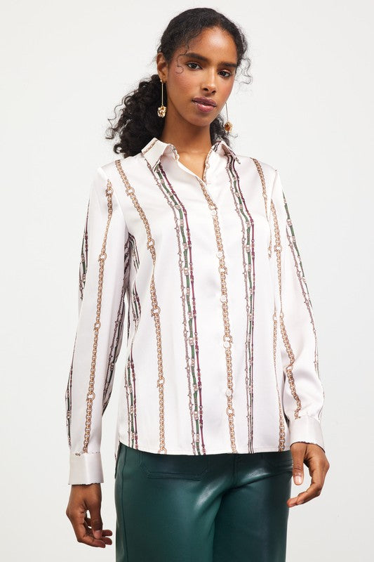 The Giana Top is a ivory/multi-colored top with a unique print. This print is unlike any other and we know that this top will be a standout. Pair this top with leather pants and boots for a fierce outfit, or pair this top with our Milani Skirt for a matching outfit!