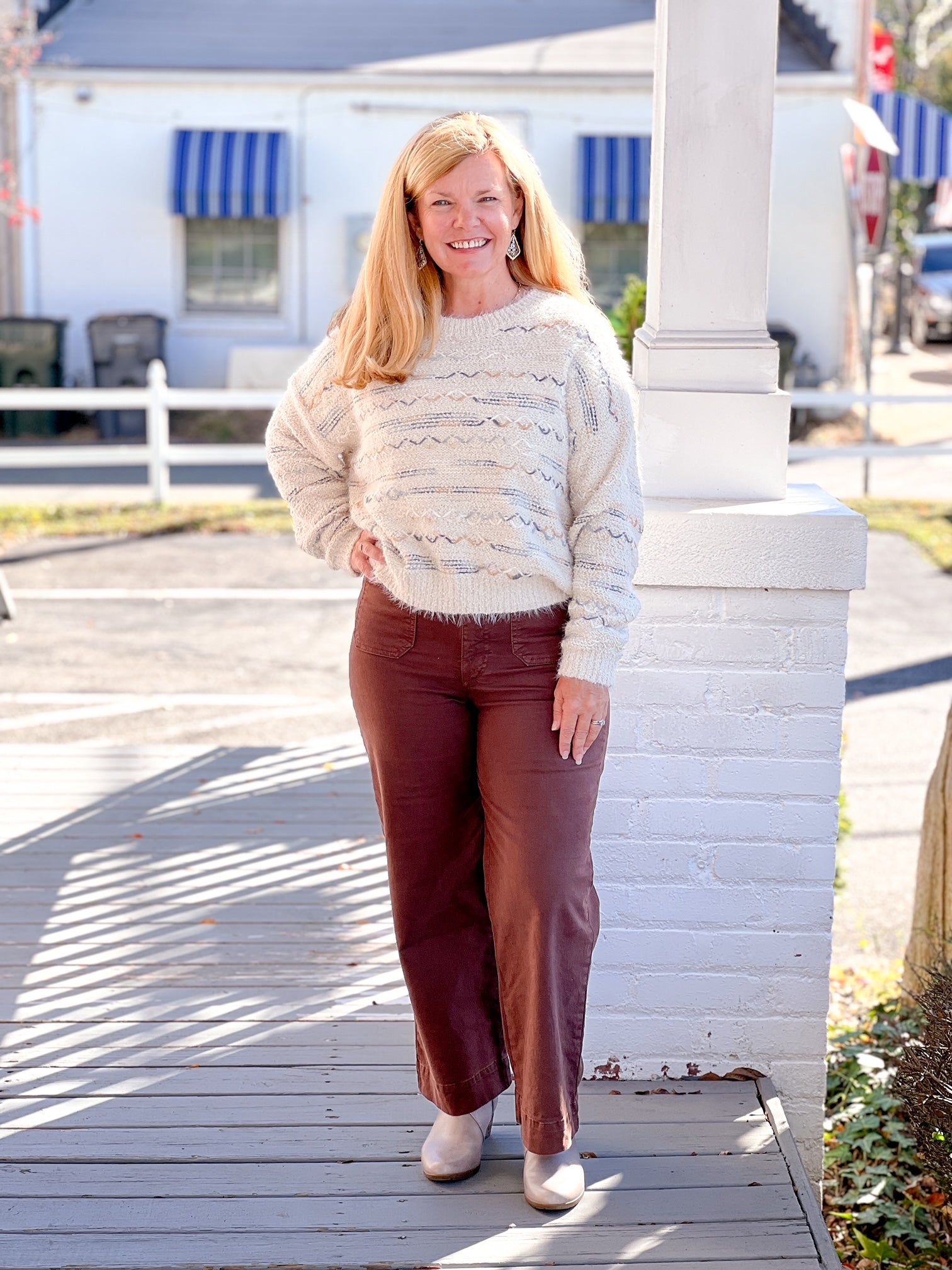 A more perfect pair of pants could not exist. They hit at the most flattering part of your waist which creates a nice slimming effect, then they're wide through the leg for a retro look. If you’re in-between sizes, we’d recommend sizing up.