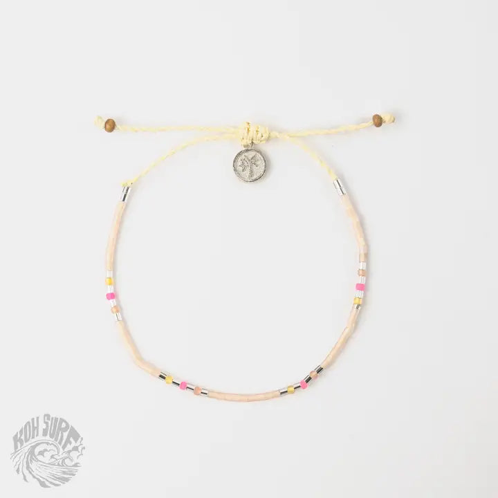 Take a trip to the beach in style with our Nusa beaded bracelet. With a wax polyester cord to complement the colour pattern of the beads, this simple bracelet design is the subtle accessory your wrists will love this summer.
