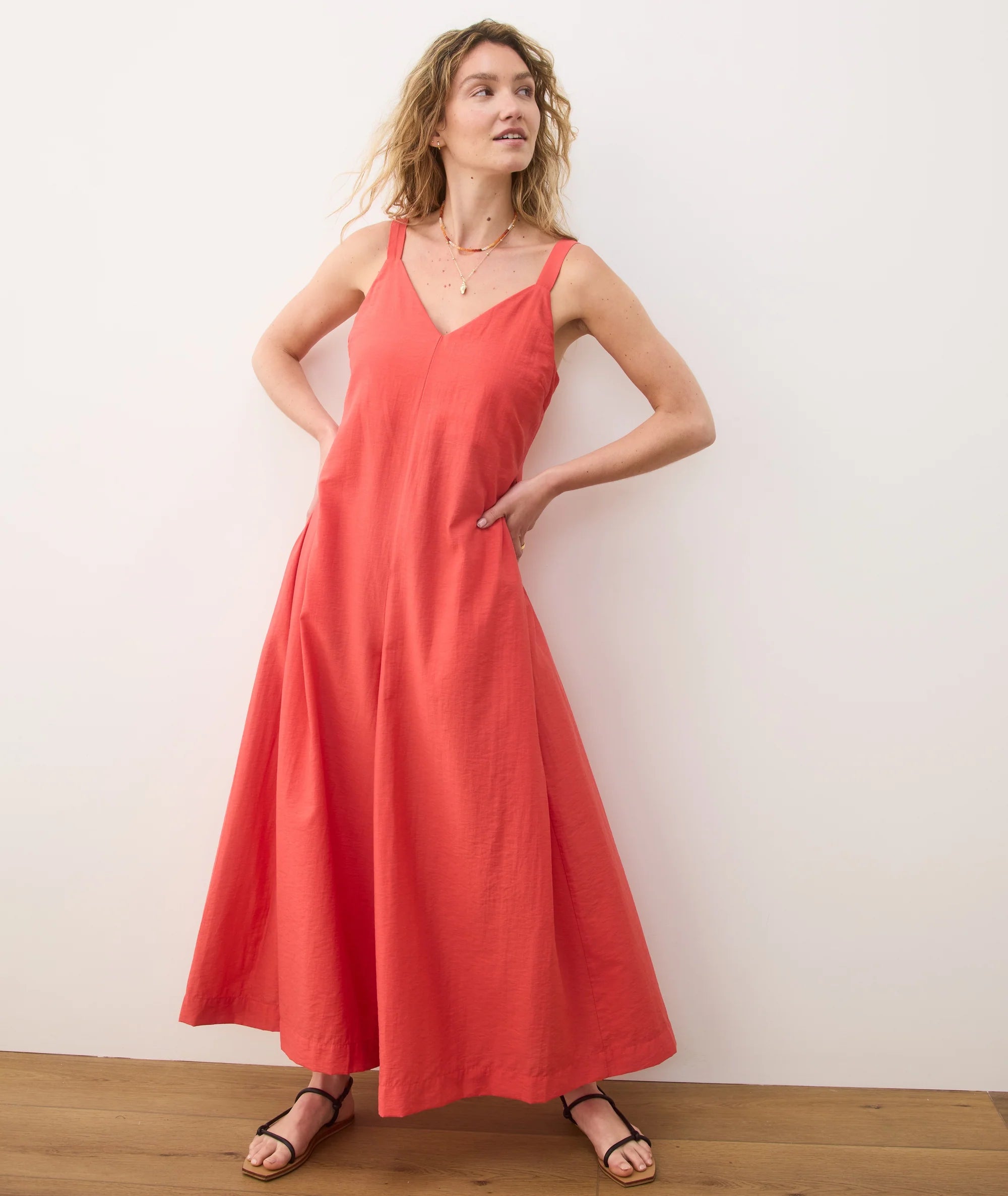 This jumpsuit is a total game changer—looks like a dress, but surprise, it’s actually pants! With a flowy maxi silhouette, adjustable straps, and pockets (yes, pockets!), it’s as functional as it is stylish. Made from a silky TENCEL™ blend with a lived-in texture, it’s perfect for dressing up or down depending on your mood. Throw it on, and you’re good to go—whether it’s for a day out or a night on the town.