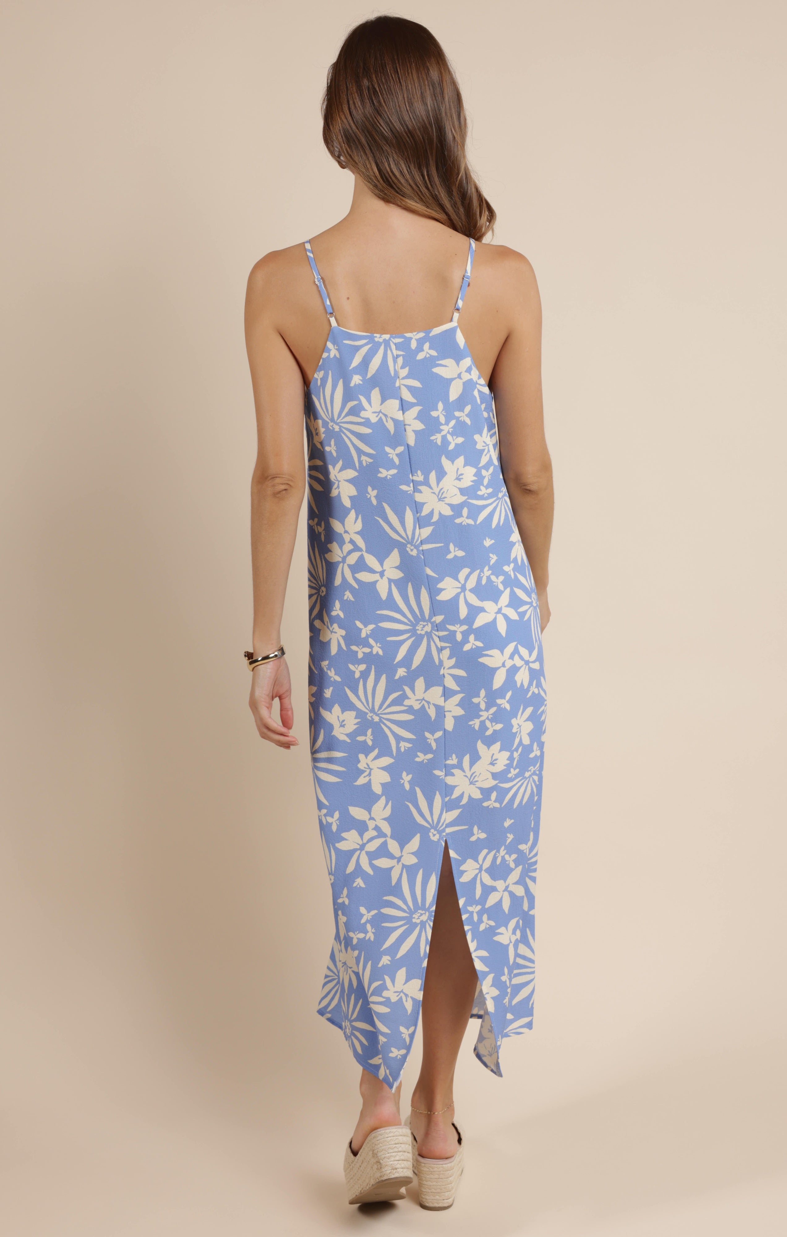 Get ready to bloom in style with our Flower Trail Dress! This sky blue and cream beauty features a sleeveless design, square neckline, and maxi length for a effortlessly chic look. Fully lined and fitted for a flattering silhouette. Add this to your wardrobe for a touch of floral fun!