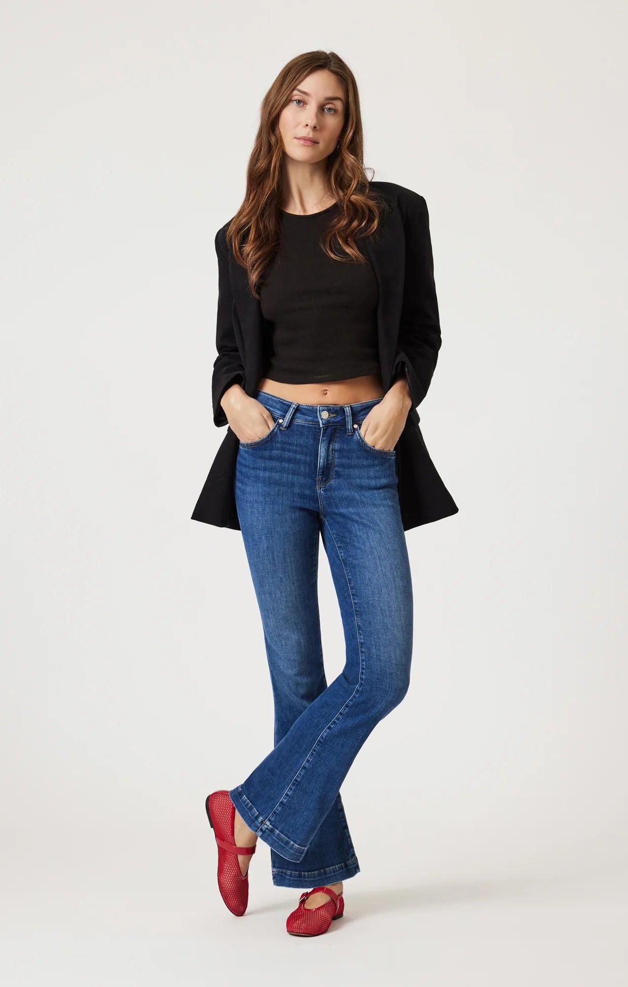 Our Sydney fit is an ultra-feminine flare with a flattering, leg-defining silhouette. The high rise is both comfortable and curve-flattering. These high rise, flare jeans have a sophisticated midnight blue wash. Tencel ™ and a cotton blend gives this pair an extremely soft hand feel with plenty of stretch.