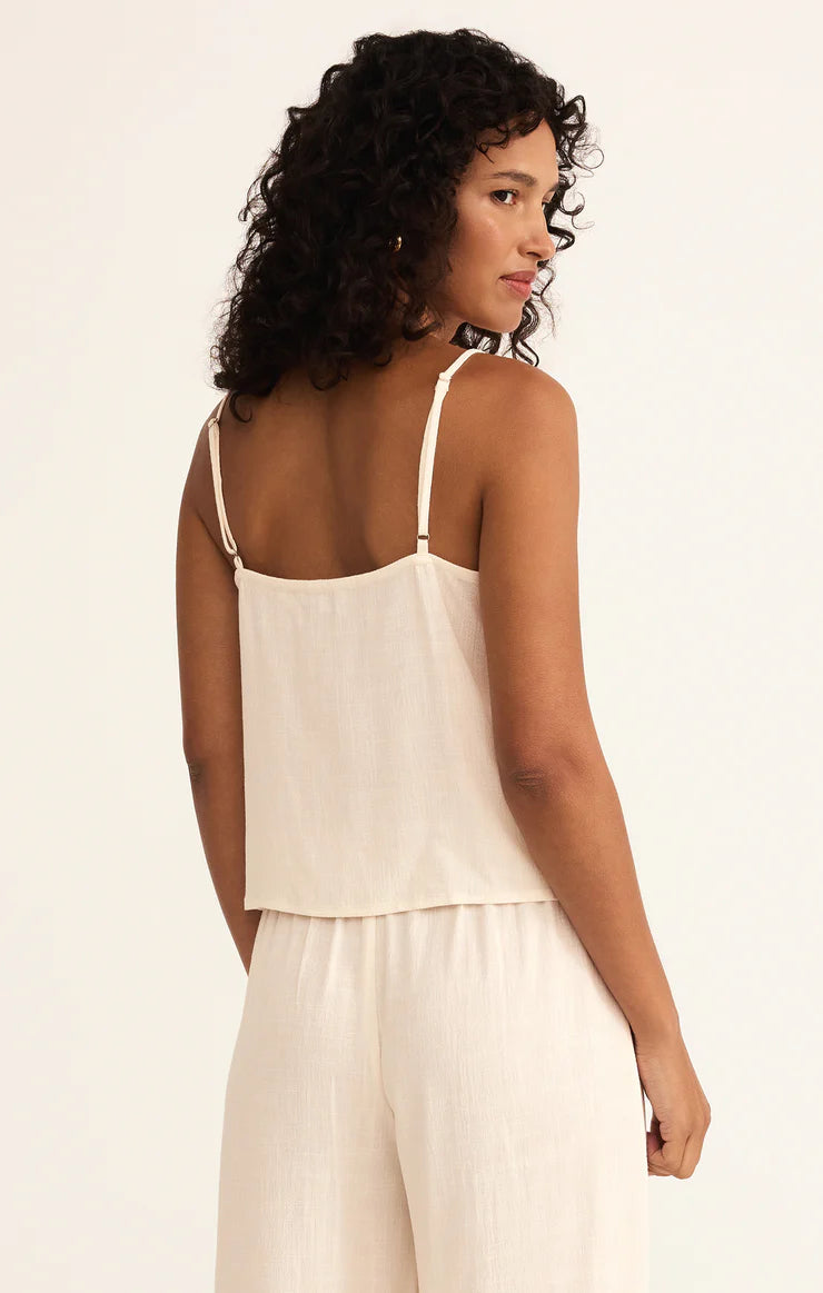 Unleash your beachy vibes with the Savoy Tank in Sea Salt by Z Supply. This sleeveless tank features adjustable spaghetti straps and a button front for a relaxed fit. Perfect for a day in the sun or a night out on the town.