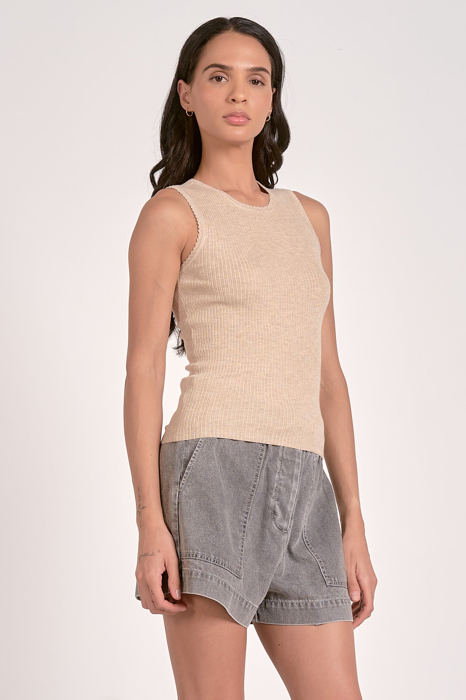 The Wendy Tank in Sand is the perfect blend of style and comfort. Stay cool with its sleeveless design, while the ribbed texture adds a touch of elegance. The fitted cut will show off your figure, making you feel confident and stylish. Upgrade your wardrobe with this must-have piece!
