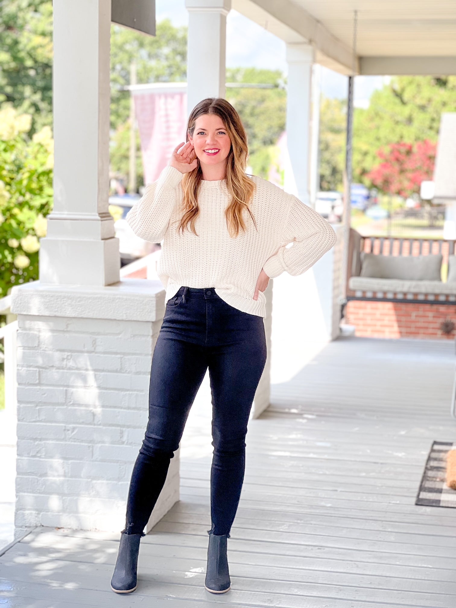 For dressed down fall days when not looking polished is not a problem. A high rise jeans with a distressed look is our go-to pair of jeans!