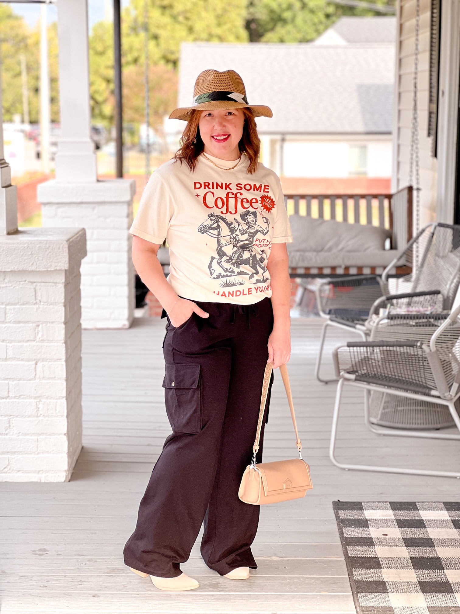 Drink some coffee. Put your boots on. Handle your shit. This western graphic tee is for the caffeine-fueled cowgirls who wake up ready to wrangle whatever the day throws their way. Whether you’re chasing the sunrise, herding kids, or riding full-speed into a Monday, this retro-inspired tee brings grit, sass, and style in one badass package. Made from garment-dyed cotton for that perfectly lived-in feel, this women’s graphic tee features a curve-flattering, relaxed unisex fit that’s breathable and non-clingy. The multicolor graphic pops on an ivory tee that’s as bold as your to-do list—and just as unstoppable.