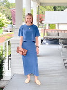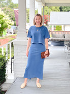 Effortlessly stylish, this body-skimming midi skirt combines a classic denim look with the softness of cotton jersey. Designed with an elastic waistband for a comfortable fit, it’s a versatile essential you’ll reach for again and again.