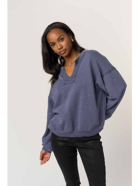 Relaxed and effortlessly cool, the Tahlia Sweatshirt is your go-to layer for laid-back days. Designed in a rich regal blue hue, this long-sleeve sweatshirt features a notch v-neckline that adds a modern touch to a classic silhouette. The loose fit offers all-day comfort, making it perfect for casual outings, lounging, or pairing with your favorite denim for an easy, stylish look.