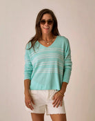 This lightweight 100% Organic Cotton sweater saunters into summer with cute, casual confidence. Her subtle back v-neckline detail adds a little wink as you walk on by.