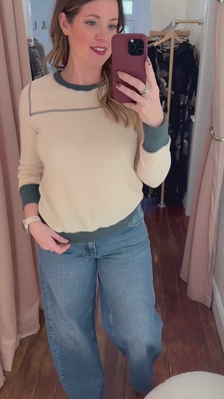 The Bellamy Top is the perfect mix of comfort and contemporary style. Designed with a classic crew neckline and contrast reverse stitching, it adds a modern touch to your everyday look. Long sleeves with thumbholes provide cozy, functional flair, making it ideal for layering or wearing solo.