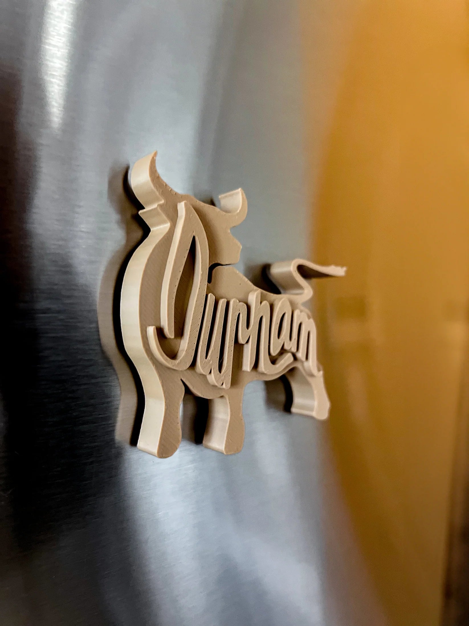 A local legend, now holding up your life’s little moments. We’ve taken Durham’s most iconic design and turned it into a hip, fresh fridge magnet—perfect for securing grocery lists, photos, or that random takeout menu you swear you’ll use someday. With its raised 3D detailing and vintage charm, this isn’t just a magnet—it’s a tiny tribute to Bull City pride. And at 2.5" tall, it’s just the right size to stand out (without hogging all the fridge real estate).