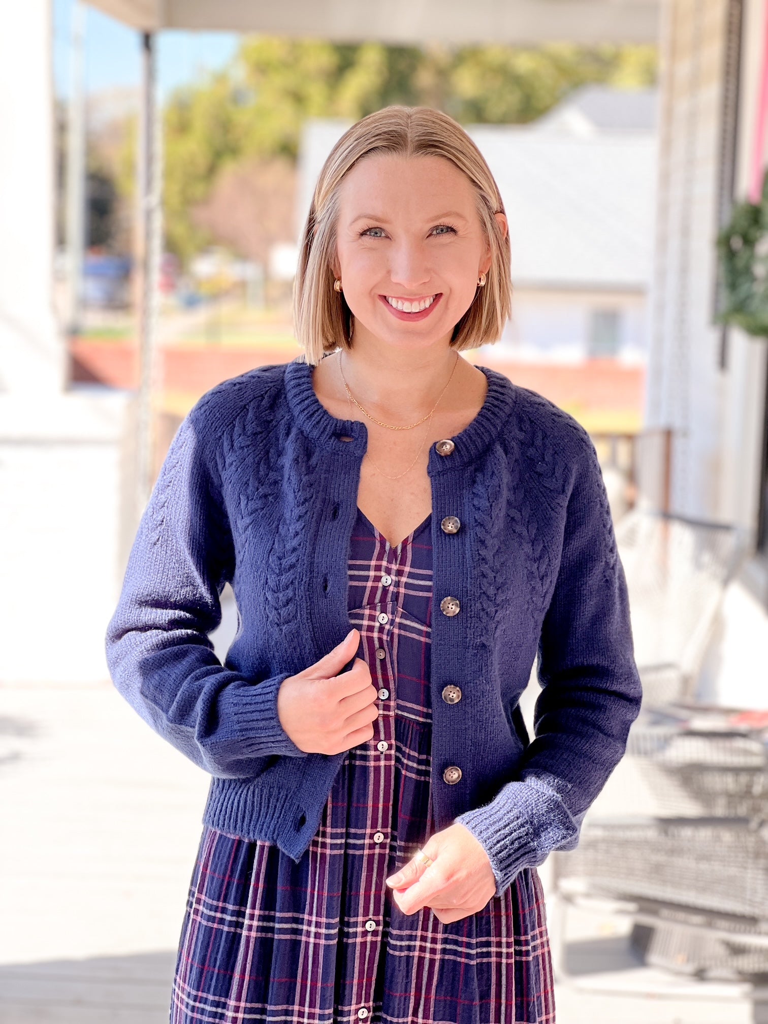 Model is wearing a size small. We find that the Everly Cardigan runs true to size.