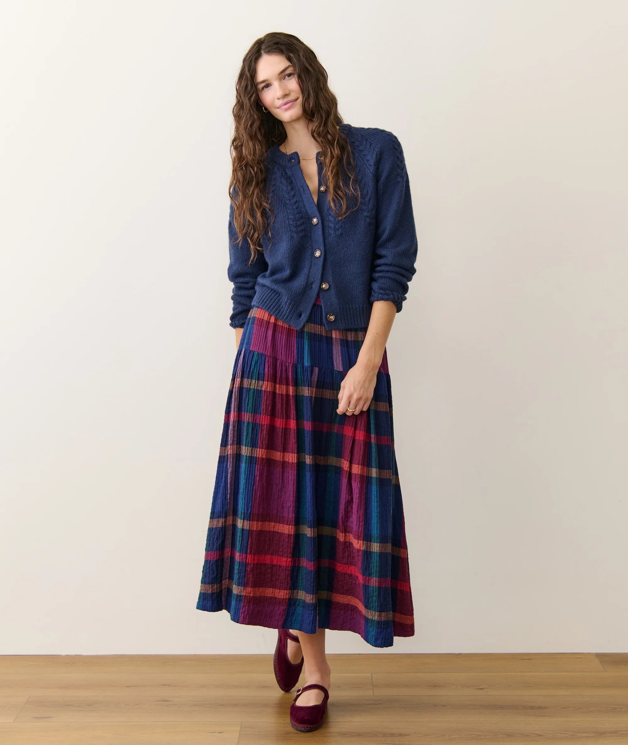 Say hello to a whole new take on cable knit. t's everything you want in a soft, luxurious cable knit, with just a little more fun and personality. This fabric is the same anti-pilling blend that we use in our Fair Isle sweaters, just in a new stitch. It gets its warmth and softness from wool and alpaca, but structure from nylon and poly that helps it keep its shape. After all, when a sweater feels this good, you want it to last a while. Pair with our Gia Skirt for a colorful, holiday outfit.