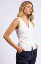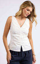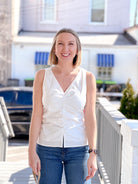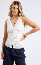Introducing the Like Totally Tank - the perfect mix of sophisticated and fun! This tank features a v-neckline, ruched sides and front, and a front slit on the hemline. This white tank top can be worn to work and paired with a blazer, or this tank can be dressed down and worn with jeans.