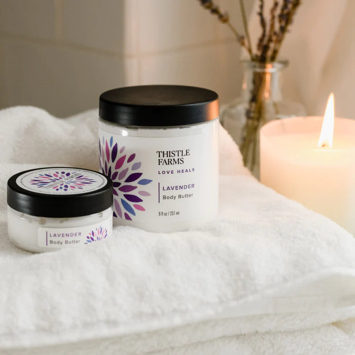 Discover the indulgent experience of our lavender body butter, a delightful twist on traditional body butter. This luxurious formula glides effortlessly onto your skin, enveloping it in a silky-smooth texture that feels refreshingly airy. Experience the best of both worlds as our body butter offers the nourishing benefits of thick creams while providing a lightweight feel. Say goodbye to bulkiness and hello to deep hydration that leaves your skin feeling beautifully quenched and revitalized.