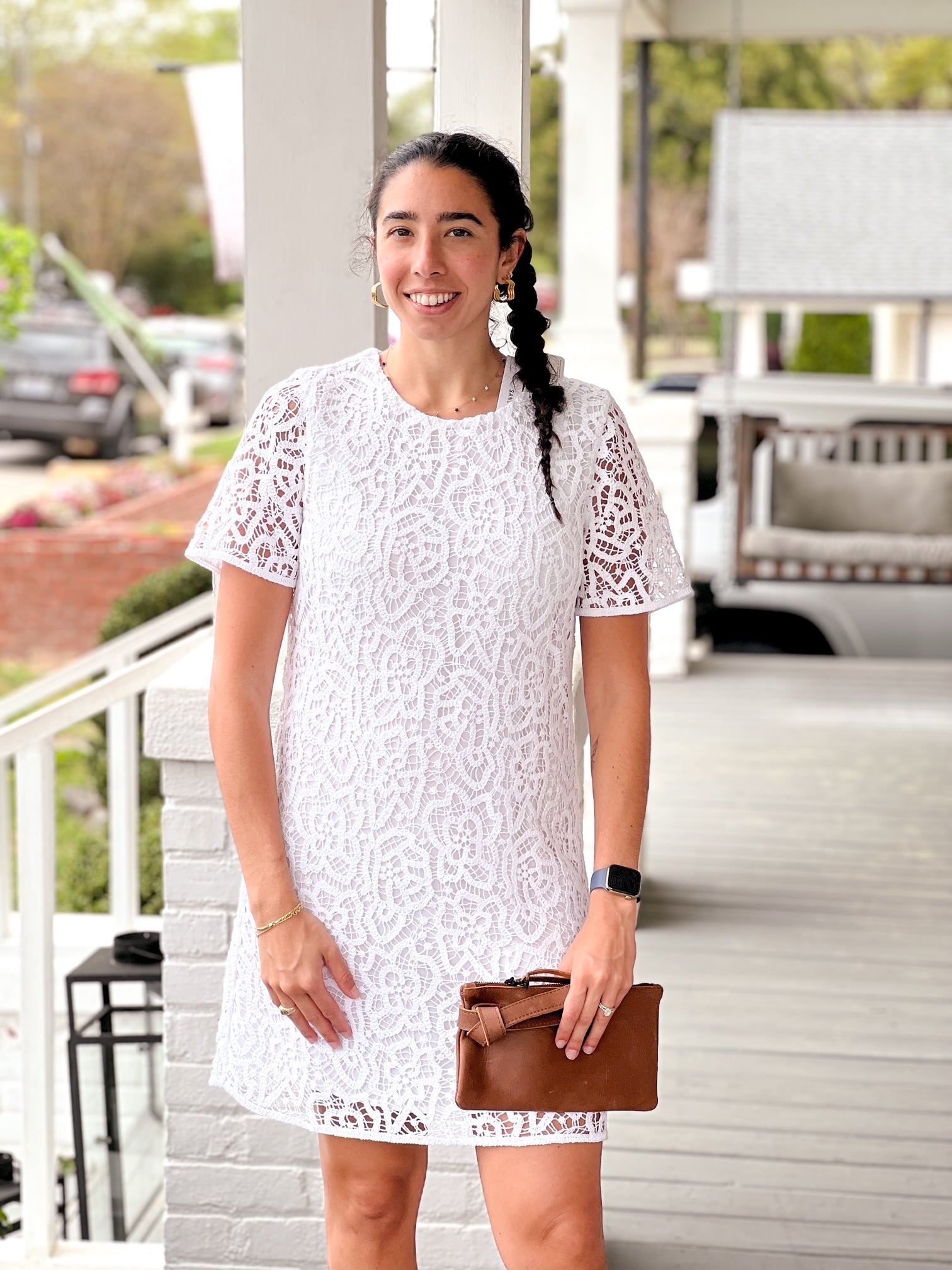 This sassy little lace dress is perfect for any occasion! With a crew neck and key hole back closure, it's stylish and comfy in equal measures. Plus, the relaxed fit means you can dance the night away without feeling restricted.