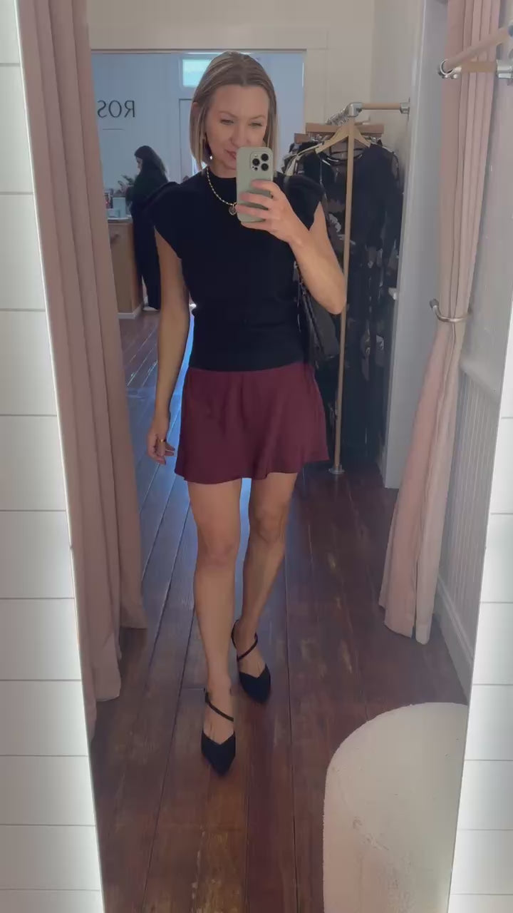 Sleek satin in a lustrous finish gives this high-rise mini its polished feel. The pull-on waistband keeps it comfortable, while the versatile length makes it perfect for everything from layering with knits to dressing up with heels.
