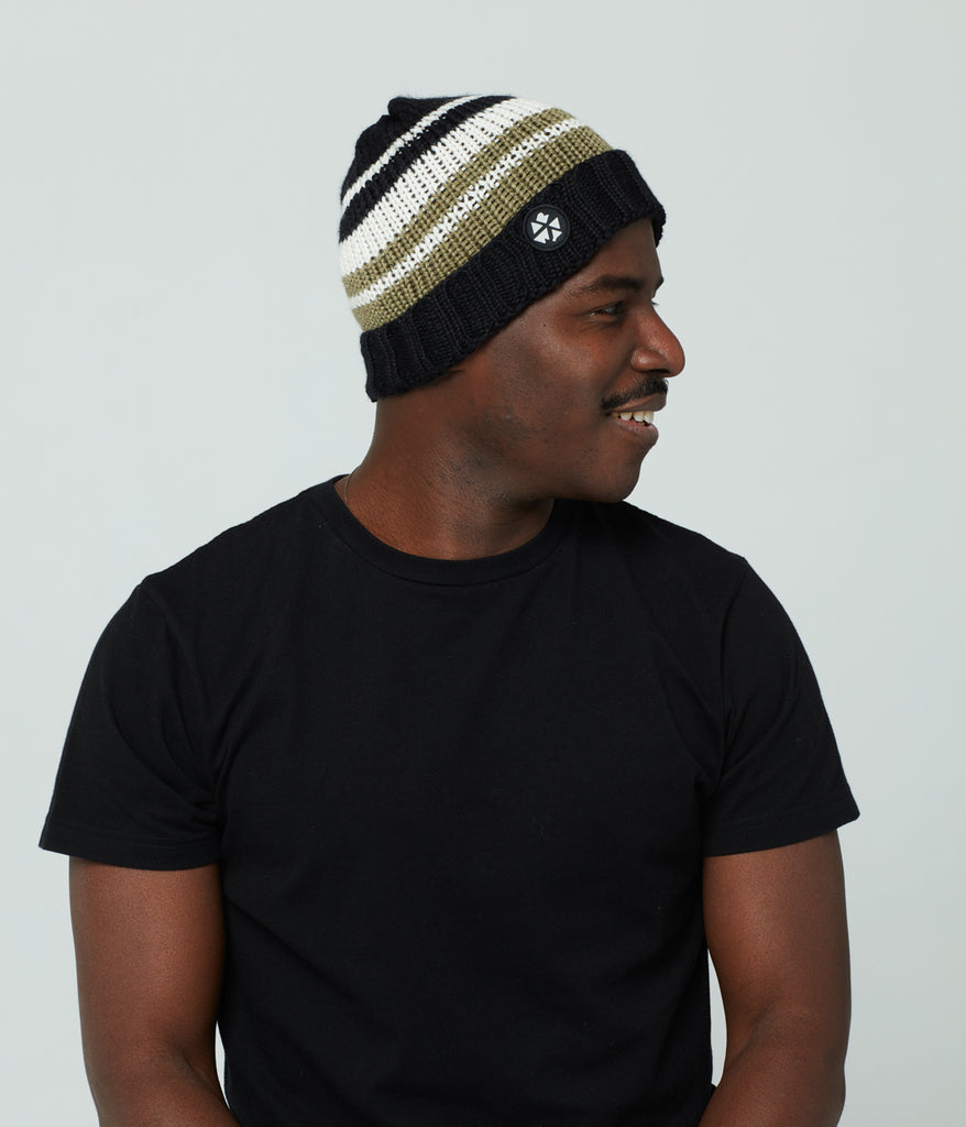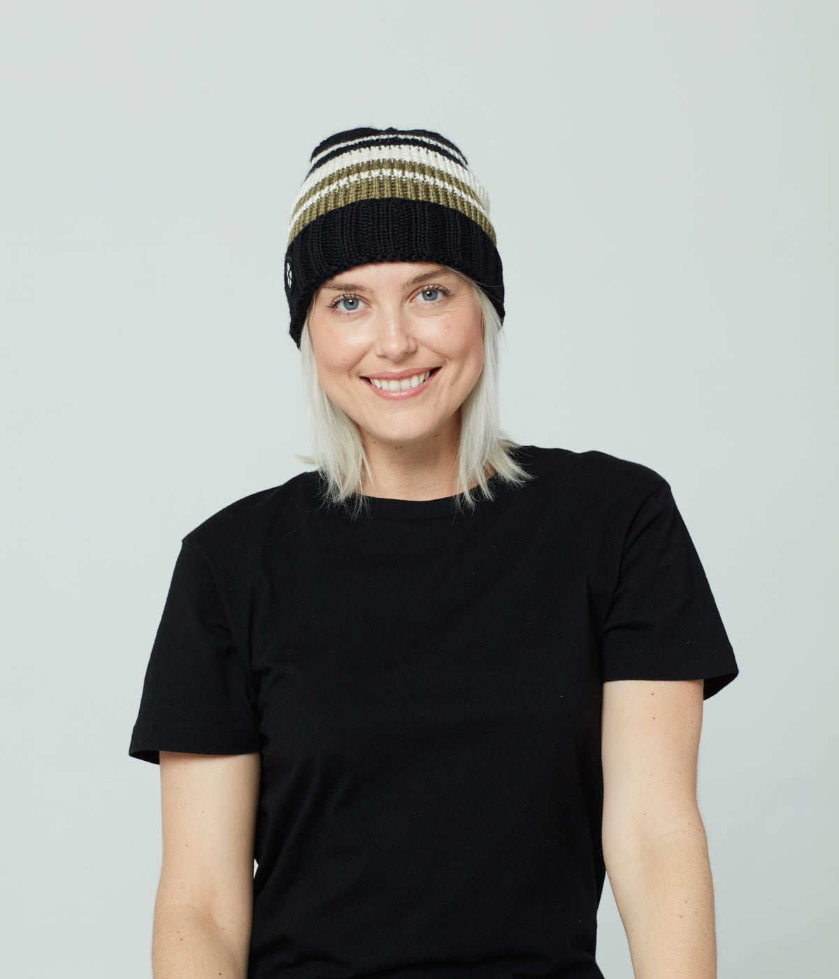 A classic striped beanie, 'the Alabama', is a lightweight yet cozy beanie that's perfect for everyday.