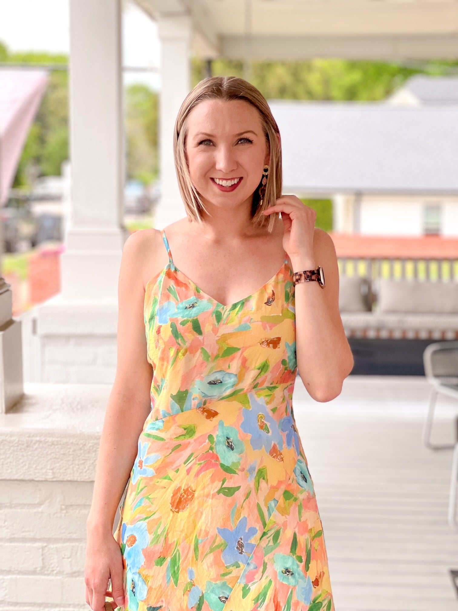 Amber is wearing a size small. We find the Daisy Chain Dress runs small and recommend sizing up.