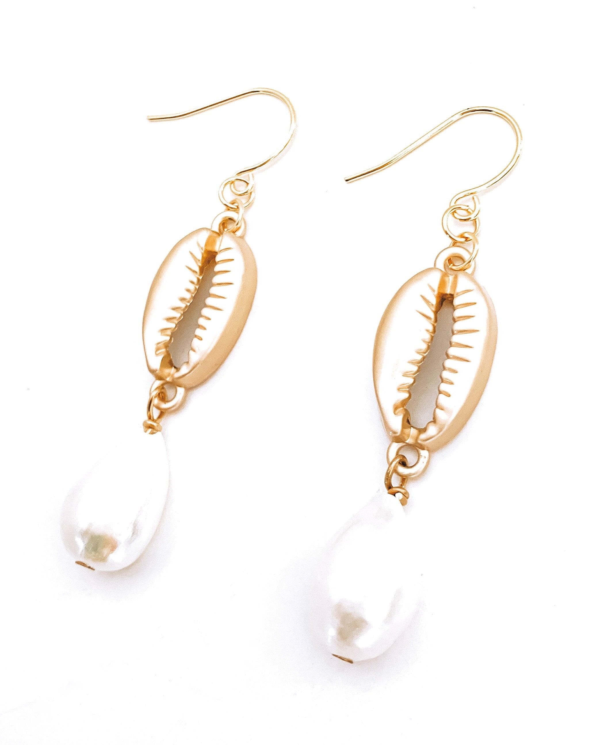 Escape to the beach in style this summer! These shell + pearl earrings are a MUST have in your Béljoy collection.