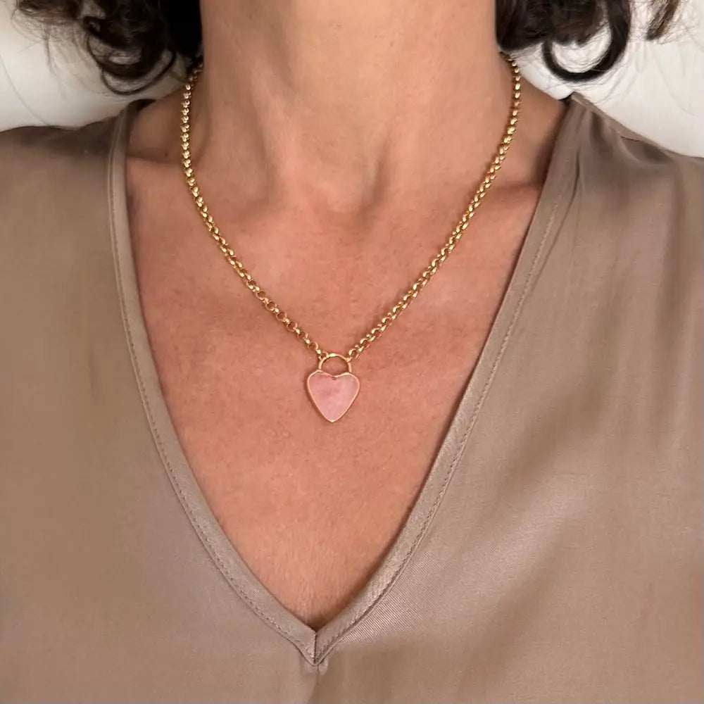 Gemstone Heart Pendant Necklace, Rose Quartz