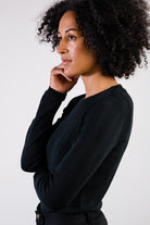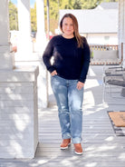 The Harper Top in a classic black features a pointelle knit texture. This black long sleeve top is perfect for layering during the fall and winter seasons. Wear this top alone or throw on a cardigan, jacket, shacket, or whatever your heart desires over it!