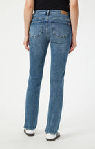 Designed with a comfortable high-rise that sits at your natural waist, Kendra has a versatile straight leg that's always easy to wear. The classic style fits slim throughout the hip and thigh, with a streamlined shape that always feels modern. With the look and feel of a faded vintage wash, this high-rise blue wash jean finishes in a straight leg. Featuring an organic cotton fabrication, this is a sustainable, soft pair with plenty of stretch.