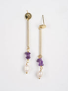 Dangle earrings get even better with tiny amethyst stones and freshwater pearls. Fancy up a simple outfit with this fun but subtle style.